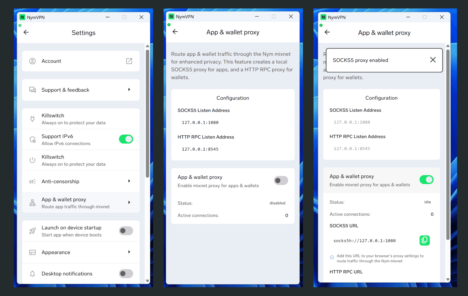 And more desktop platforms now support the dApp mode so you can split tunnel from your wallet to Ethereum via the mixnet!