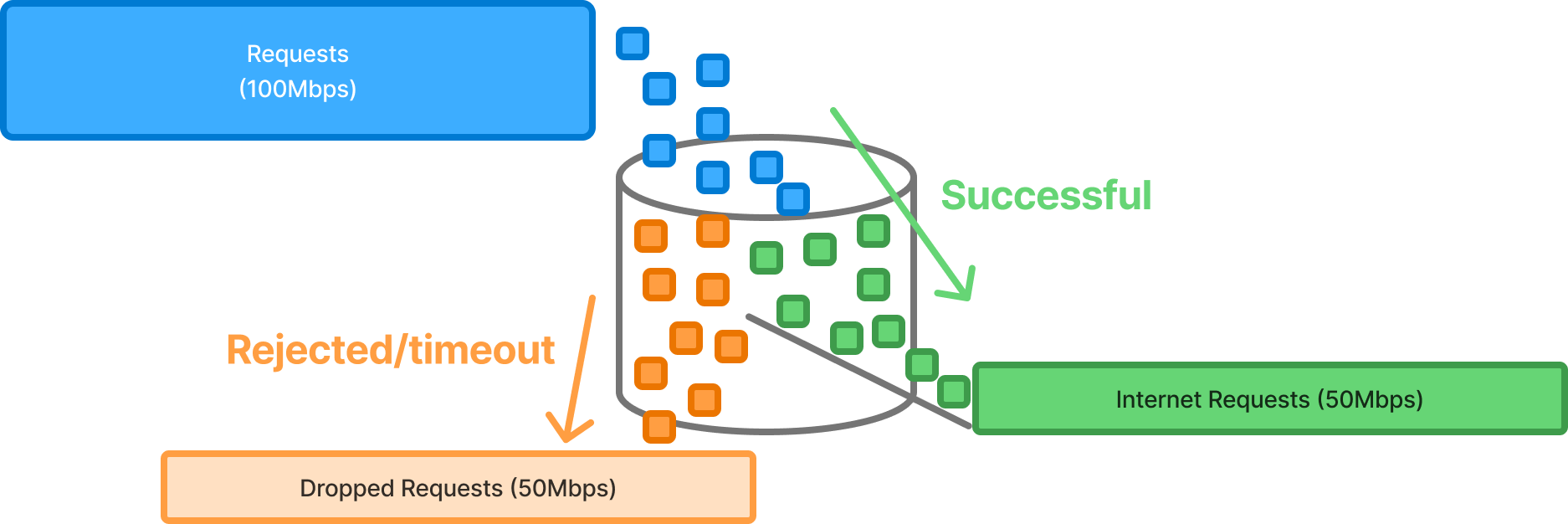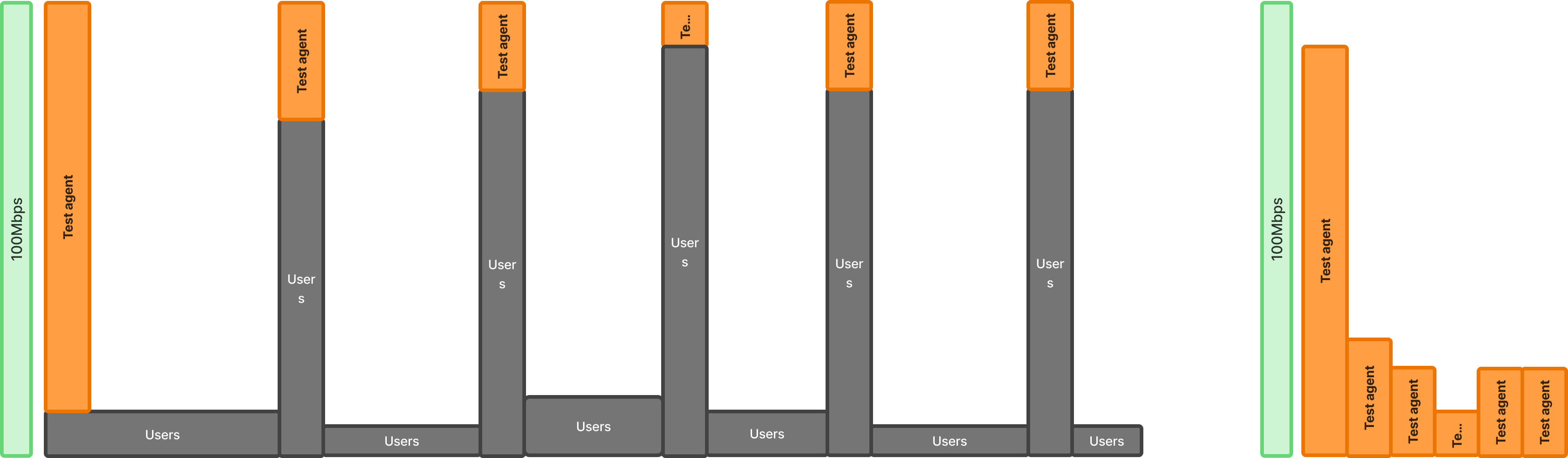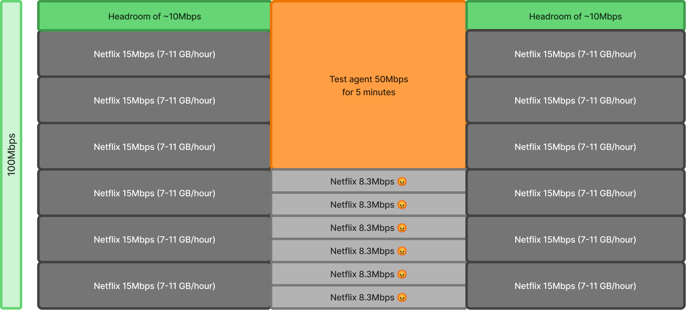 Imagine there are 6 * Netflix 4k users on a 100Mbps Gateway, let's look at different traffic stream scenarios: