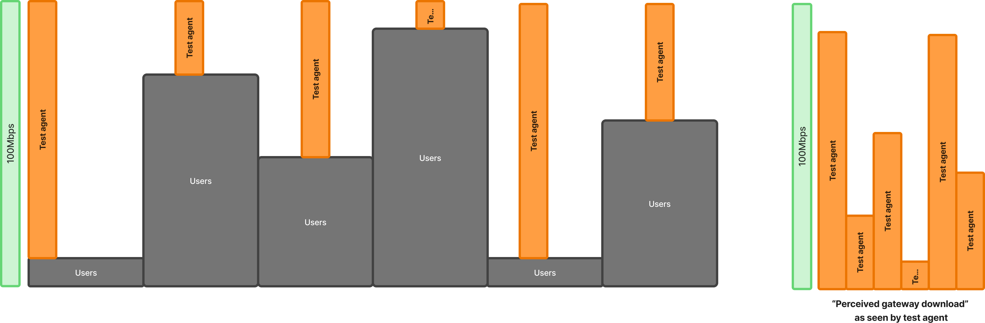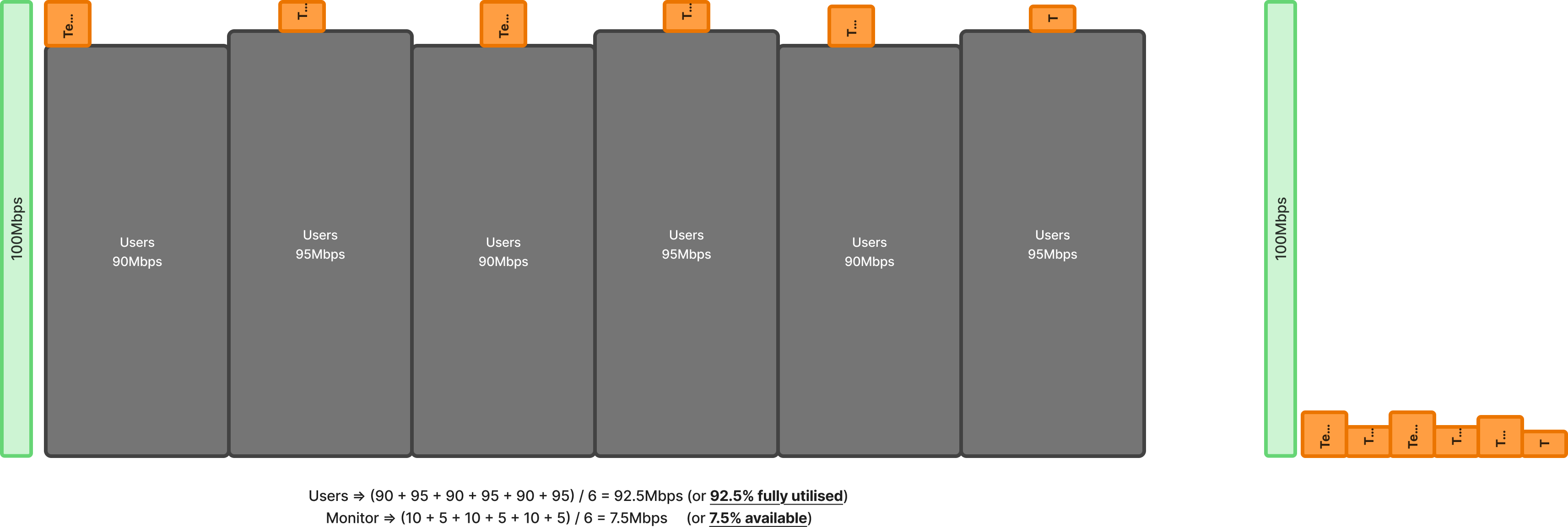 If the timing of the probe and user activity overlaps, then the “available bandwidth” remaining looks like this from the probe’s perspective:
